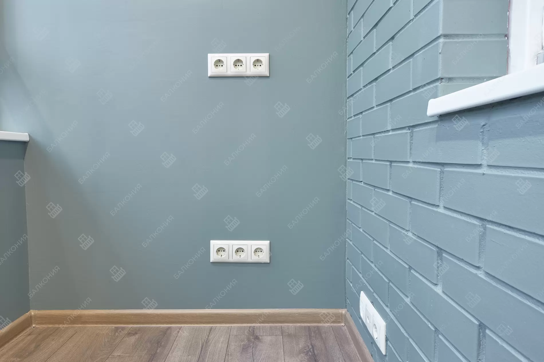 Реализованы работы по отделке балкона с утеплением в многоквартирном доме. Отделка стен и потолка выполнена из гипсокартона с покраской, фасадная стена финишная покраска, пол ламинат. Выведено и разведено по балкону электричество. Установлены декоративные споты, евророзетки. Материал предоставлялся компанией согласно пожеланиям заказчика.
